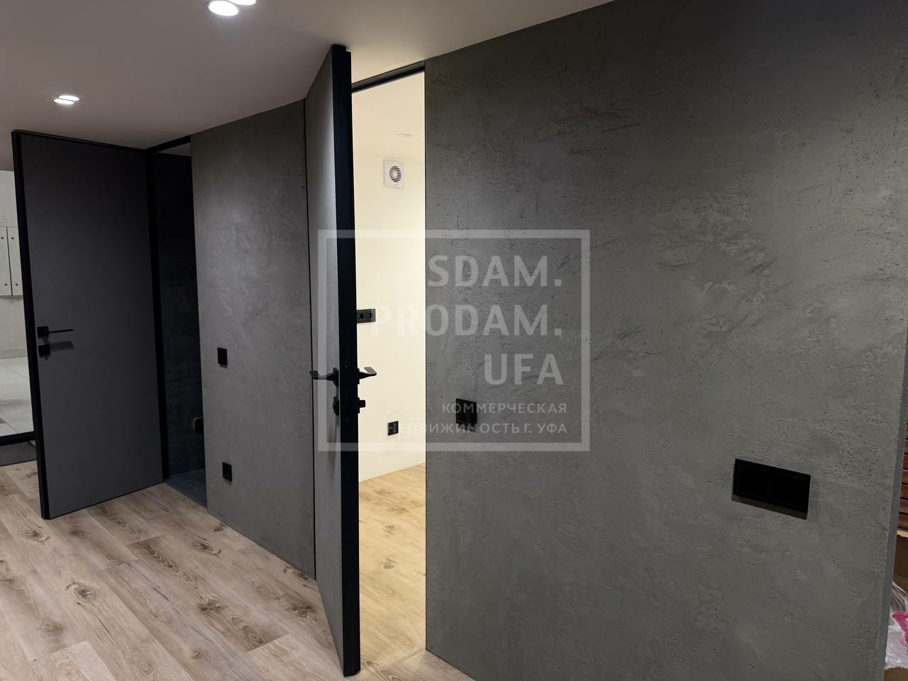 На втором уровне: два отдельных кабинета с окнами, кондиционером и мокрой точкой