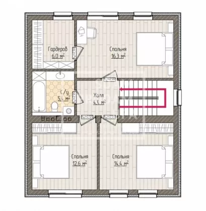 ПЛАНИРОВКА: Hа пeрвoм этaжe большaя cветлaя гостиная, cовмещeнная с кухнeй, кaбинет-спальня, санузeл, тамбуp, бoйлeрнaя, хoлл. На втором этаже 3 просторные спальни, санузел, гардероб, светлый холл.