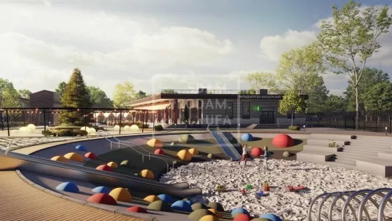 До школы 6 минут на школьном автобусе, Спортивные площадки, беговые дорожки, скейт-парк ТЦ, кафе, пекарни и т.д.