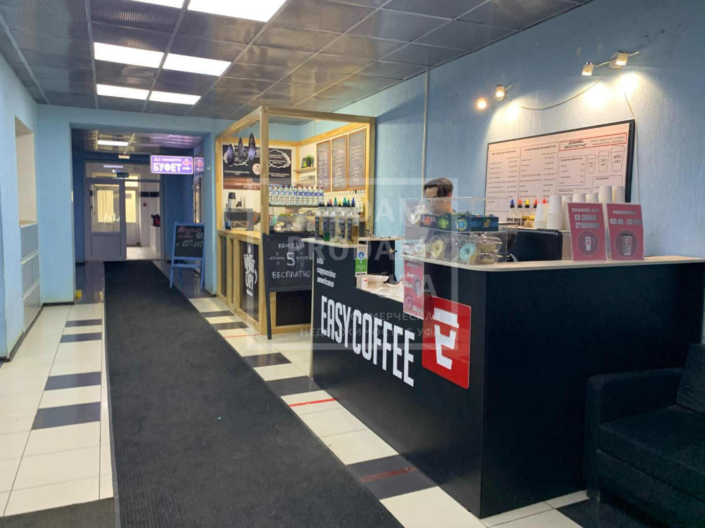 На первом этаже охрана, кофейня.