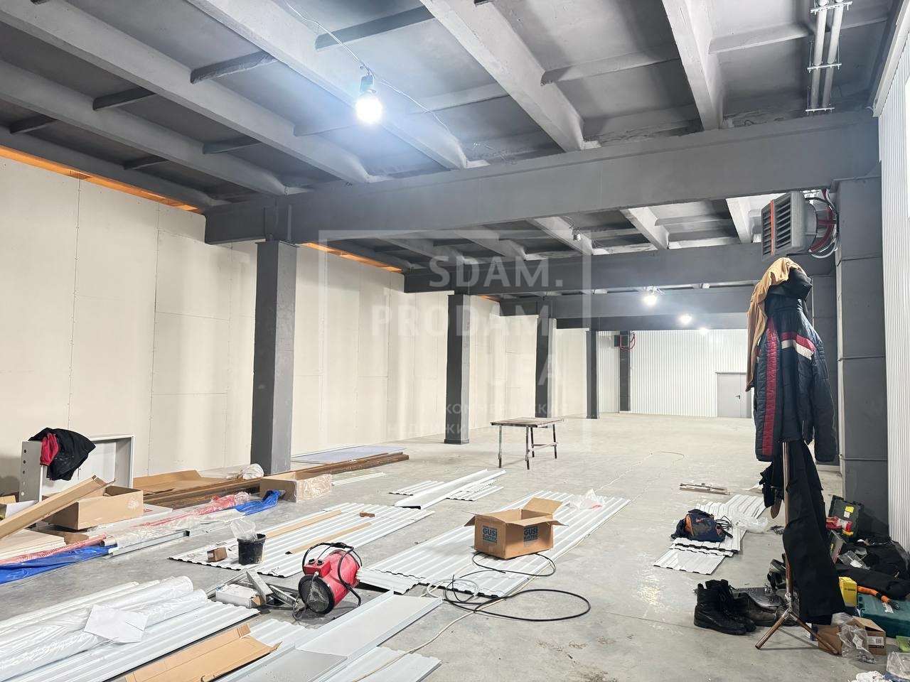 Высота потолков — 4 м, выполнена чистовая отделка.
